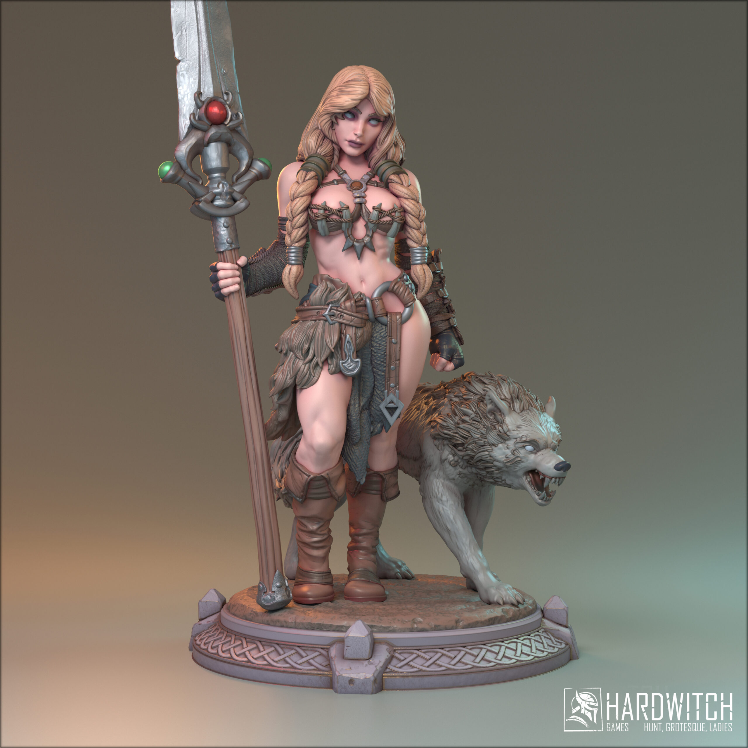 Barbare femme avec lance et loup