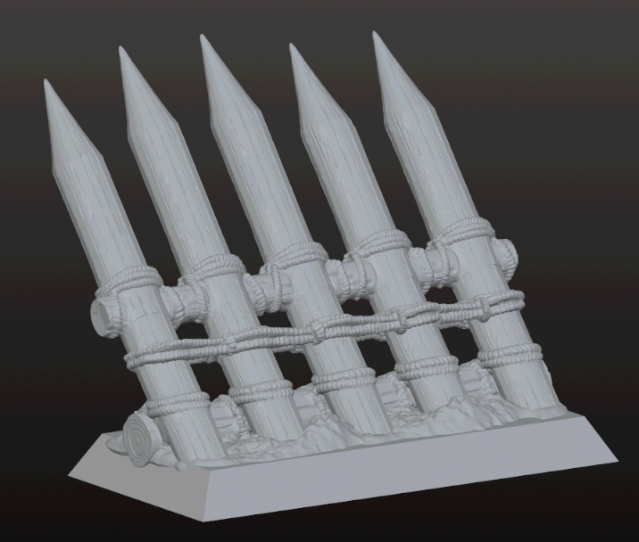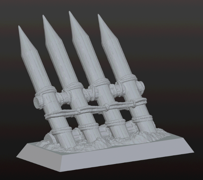 Barricade de pieux utilisée contre les charges ennemies (versions : 4 ou 5 pieux, socle 25x50mm)