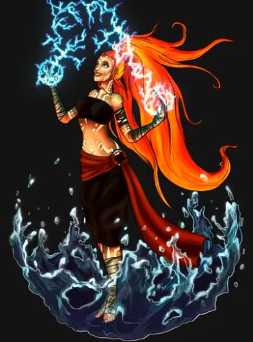 Afin de représenter la magie, j'ai hésité entre le feu : une attaque primaire de felu, et l'eau.